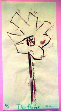 Homer Youth Art On-LineHere the flower print does show a rosy hue. The print itself is much crisper than the plate with the heavy brush strokes. This artist also carefully titled, signed and numbered her prints. This is the last print in a series of ten. Artist: Alissa, 4th grade Previous | Home | Next |