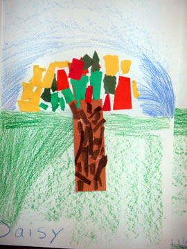 Homer Youth Art On-LinePart of the assignment was to notice where the horizon line is and put the subject in the foreground, so the horizon line doesn't just sit right below the bottom of it. They also tried to choose a good composition and colors for this scene. These five year olds did a very good job! Artist: Daisy, grade "Young Fives" Previous | Home | Next |