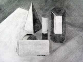 A still life. Done in pencil. Are these real objects,